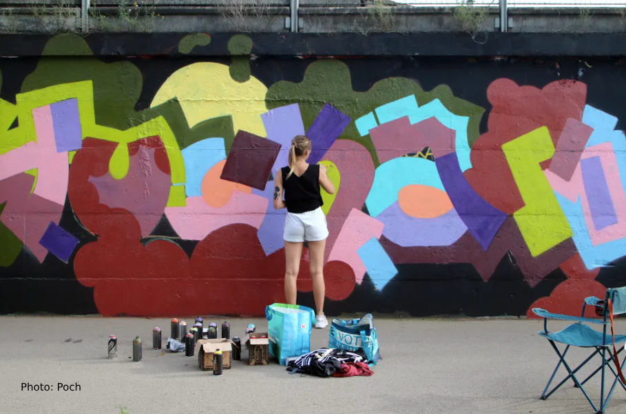 A diferencia de muchos, el graffiti llegó bastante tarde a mi vida, cuando tenía 26 años. Fotografié durante mucho tiempo los tags y graffitis de mi ciudad, era una excusa para salir a caminar y siempre me fascinó. Lo miré con admiración sin tener la idea de meterme en ello algún día porque siempre he sido una mala diseñadora y no me sentía capaz de ocupar un lugar en el espacio público. Y entonces en un momento importante de transición en mi vida necesitaba centrarme en algo, compré unas bombas y me dirigí a los lugares que tanto había fotografiado y rincones de la ciudad que había divisado durante mis andanzas. Y caí en eso.